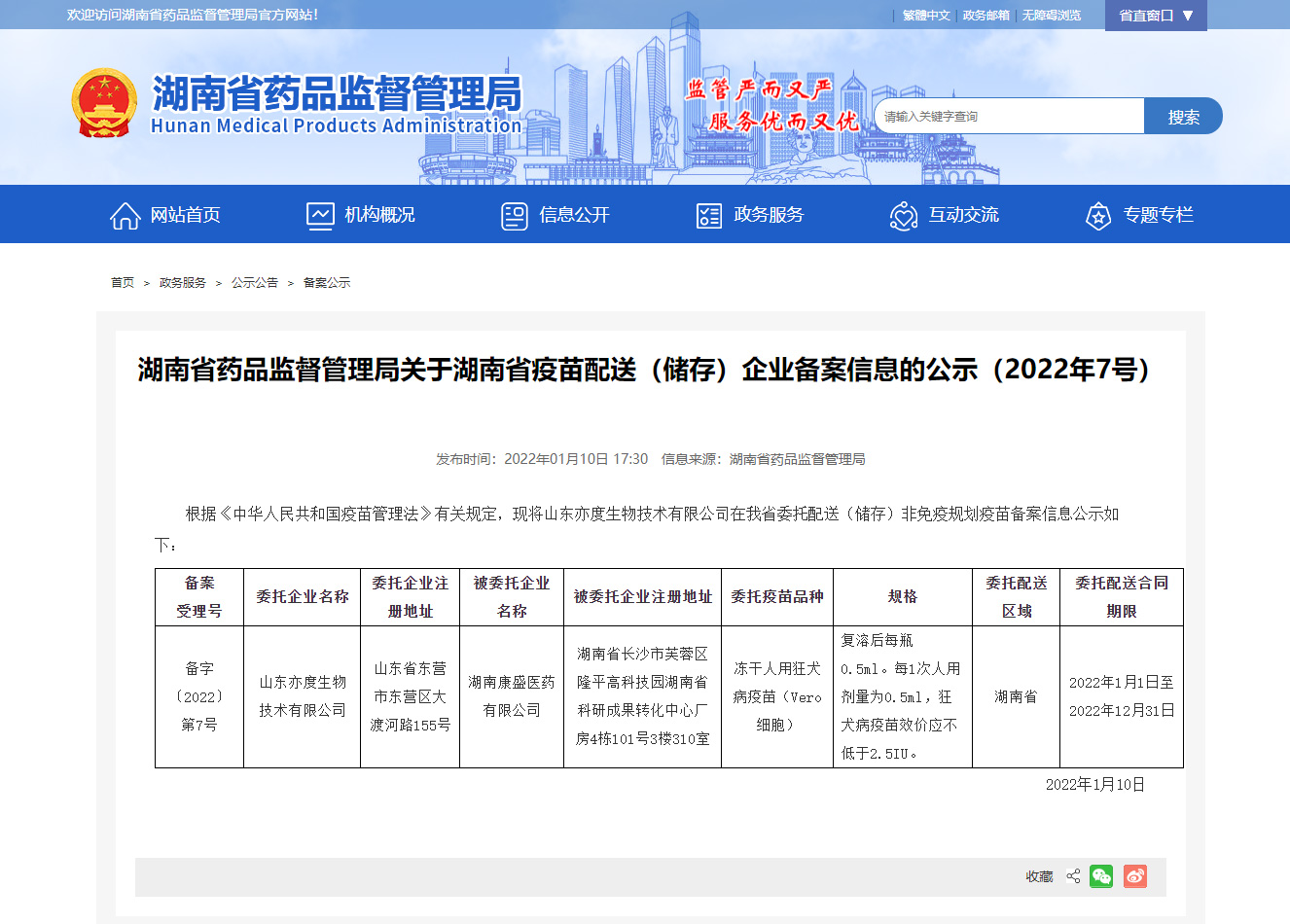 疫苗生產(chǎn)企業(yè)(非免疫規(guī)劃疫苗)委托儲存配送情況報告信息公示_湖南省藥品監(jiān)督管理局